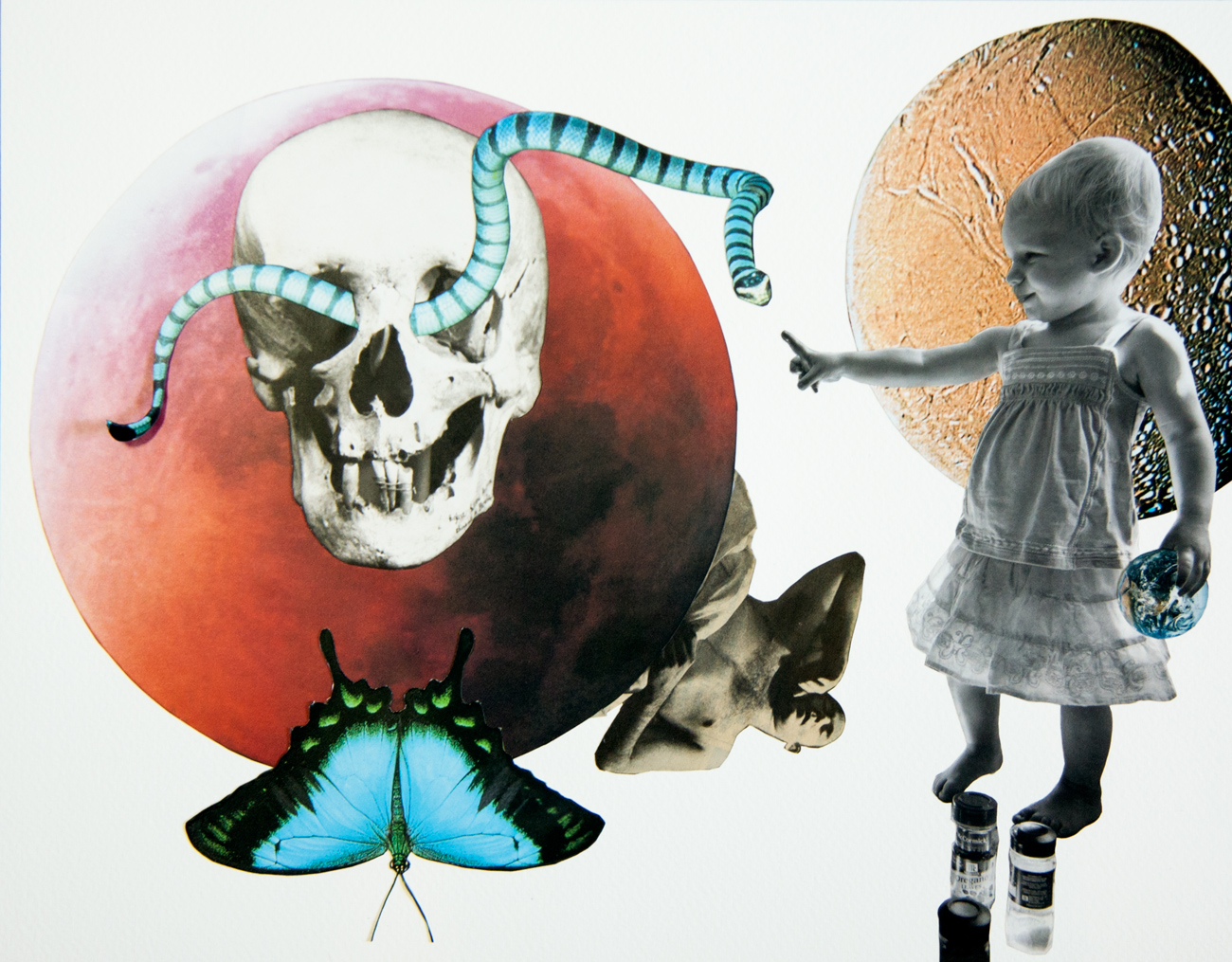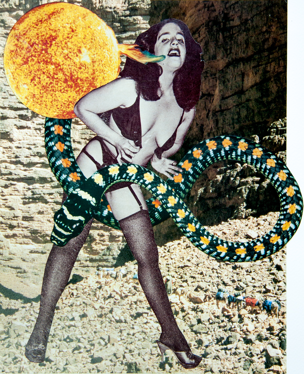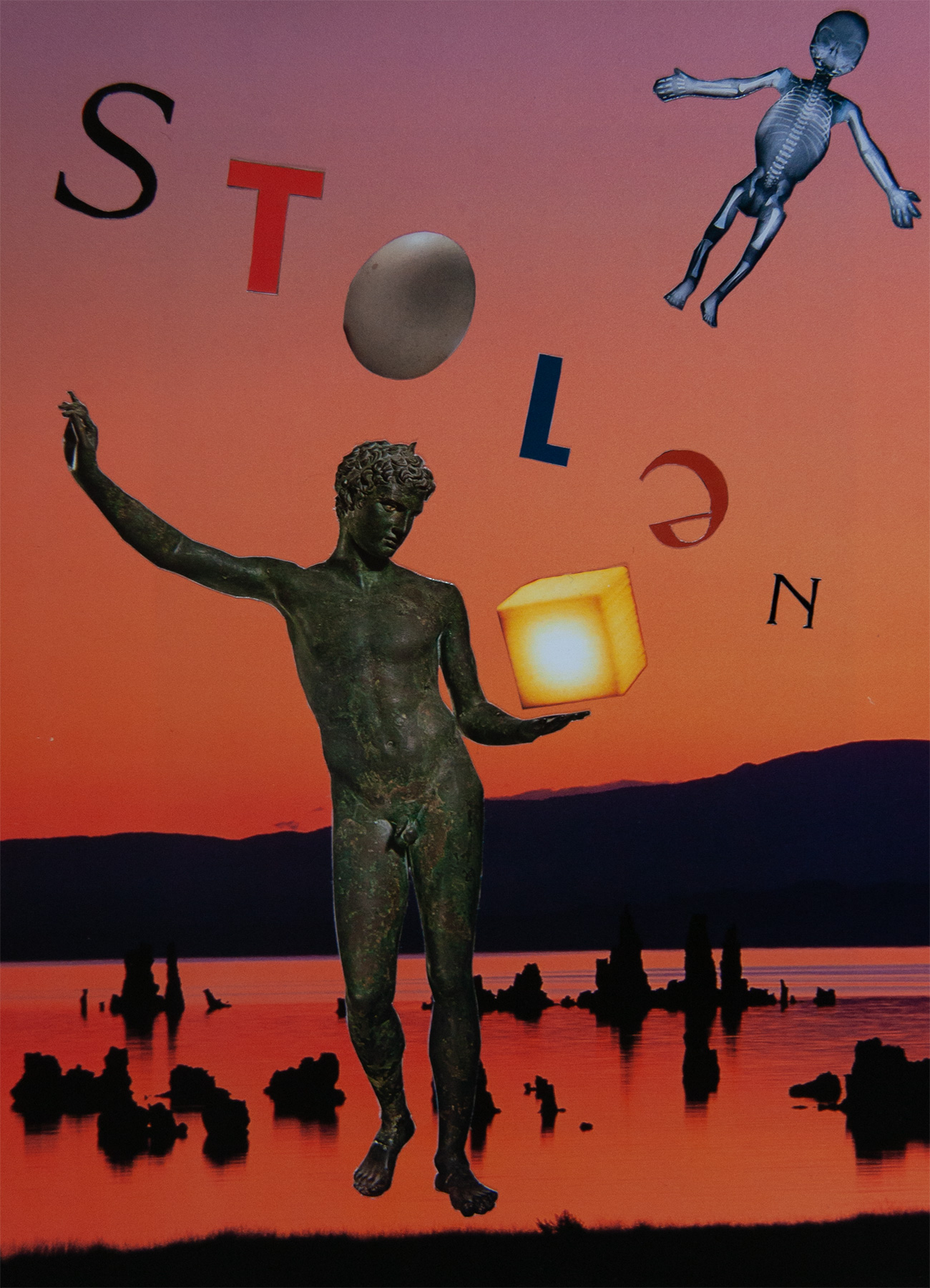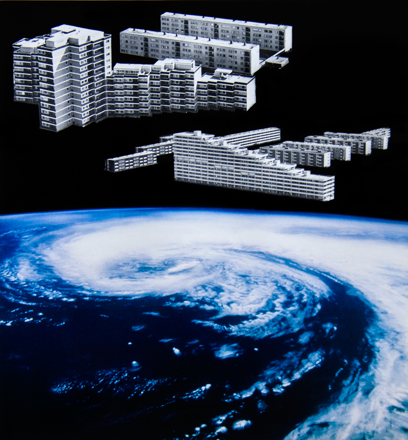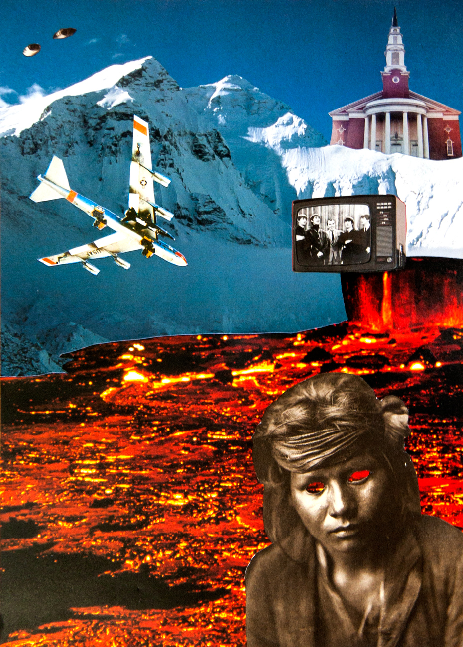 Through handmade collage, I am able to discover new relationships between varied juxtaposed elements. Within my vision, I experience an affinity that slowly strengthens as the whole creation becomes greater than the sum of its individual parts. I visualize the connections, as oscillating objects belonging in expansive environments. Perspective is paramount. I gravitate toward far-reaching skies and barren landscapes. I am building a new reality; a reality that is your invitation to introspection.